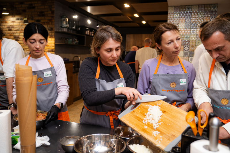 Тимбилдинг московских компаний Холдинга «СОЦИУМ» прошёл в формате мастер-класса по грузинской кухне. Кулинарный поединок в студии «Вкусотеррия»