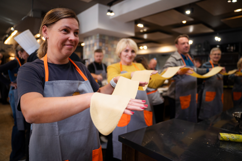 Тимбилдинг московских компаний Холдинга «СОЦИУМ» прошёл в формате мастер-класса по грузинской кухне. Кулинарный поединок в студии «Вкусотеррия»